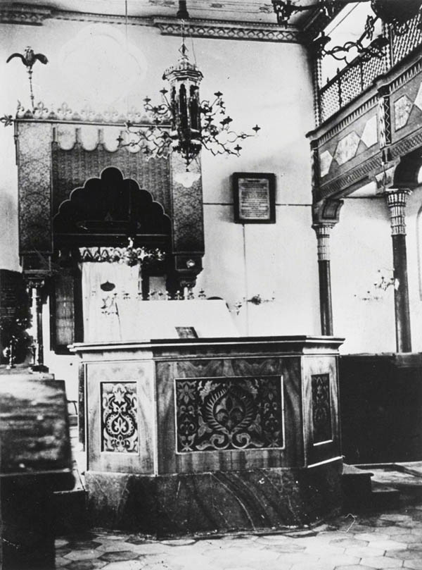 Innenraum der Synagoge Binswangen (Lkr. Dillingen), nach Osten (vor 1938). (Bayerisches Landesamt für Denkmalpflege)