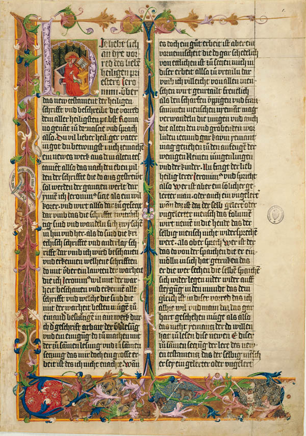Prolog des Hieronymus [Hieronymusmaler] [Bayerische Staatsbibliothek Cgm 8010, Blatt1r]