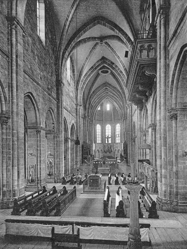 Das Foto von 1923 zeigt die Situierung des Kaisergrabmals im Zentrum des Mittelschiffs, bevor es 1937 weiter nach Osten verschoben wurde [aus: R Kellner, Der Dom zu Bamberg, Erlangen 1923, Taf15]