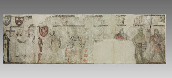 Älteste bildliche Darstellung des Königs mit den sieben Kurfürsten von 1299 aus dem Haus zum langen Keller, Zürich. (Schweizerisches Landesmuseum Zürich)
