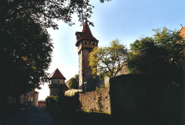 Ostheim v. d. Rhön (Lkr. Rhön-Grabfeld). Kirchenburg. Südseite mit Südwestturm. (Foto: Joachim Zeune 2006)