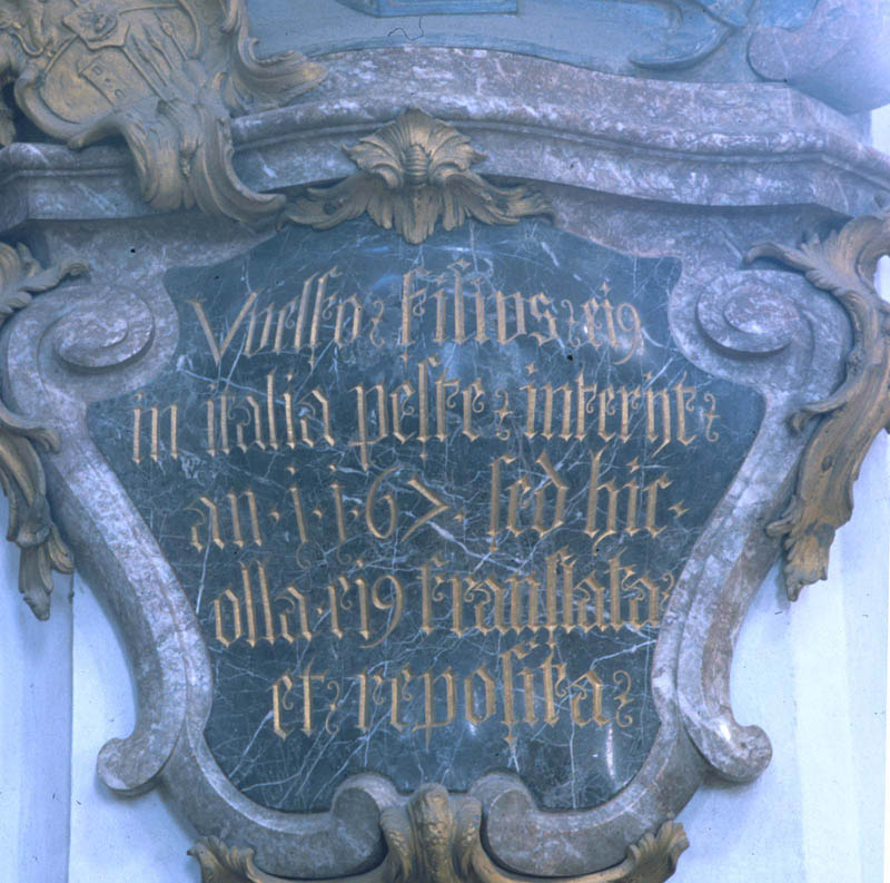 Grabmal Welfs VII. (gest. 1167), 1749, Pfarrkirche Steingaden (Lkr. Weilheim-Schongau), historisierende gotische Minuskel. (Foto: Franz-Albrecht Bornschlegel)