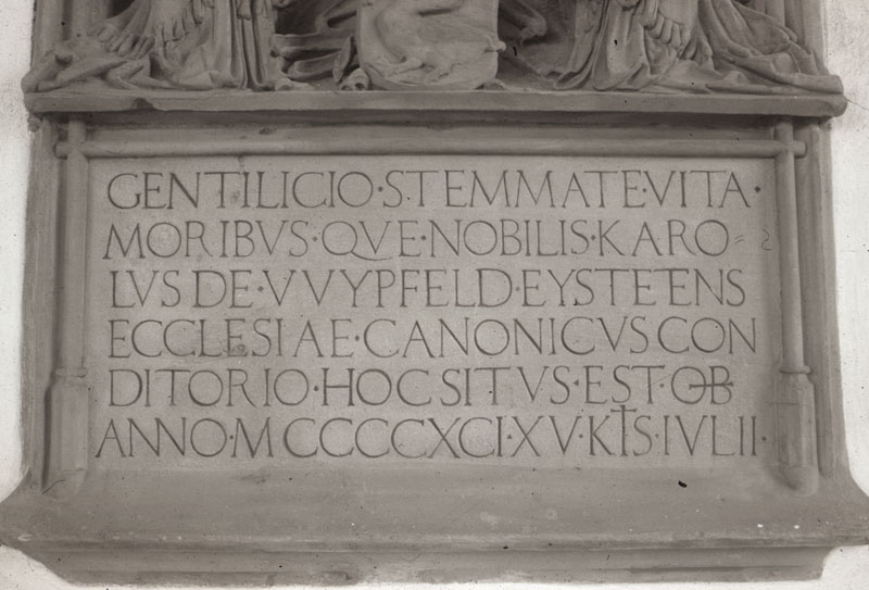 Epitaph Karl von Wipfeld (gest. 1491) im Mortuarium des Doms zu Eichstätt, Renaissance-Kapitalis. (Foto: Franz-Albrecht Bornschlegel)