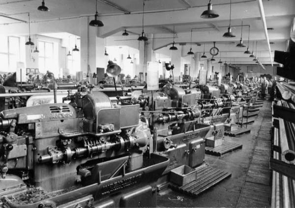 Automatensaal im Agfa Camerawerk München Das Foto zeigt Drehbänke, undatiert [Archiv der BayerAG]