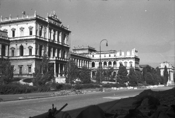 Ansicht der Akademie der Bildenden Künste München nach Kriegsende 1945. (Bayerische Staatsbibliothek München, Bildarchiv walz-0442)