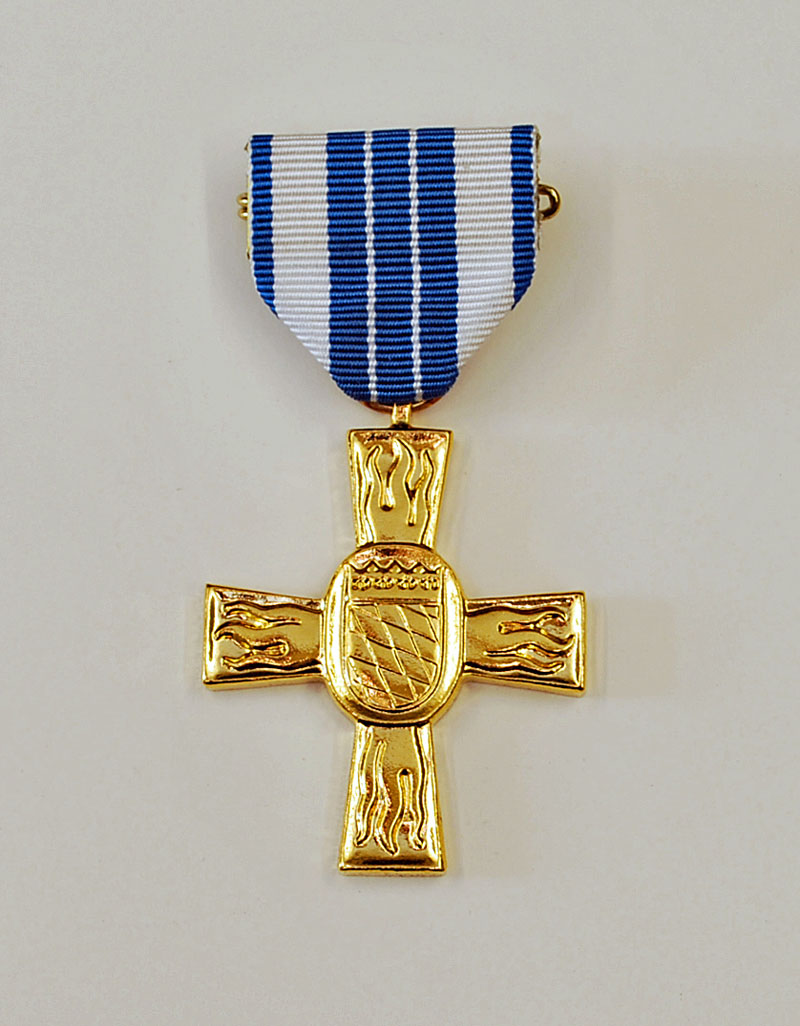 Feuerwehrehrenzeichen in Gold. (Foto: Bayer. Staatsministerium des Innern, für Bau und Verkehr)