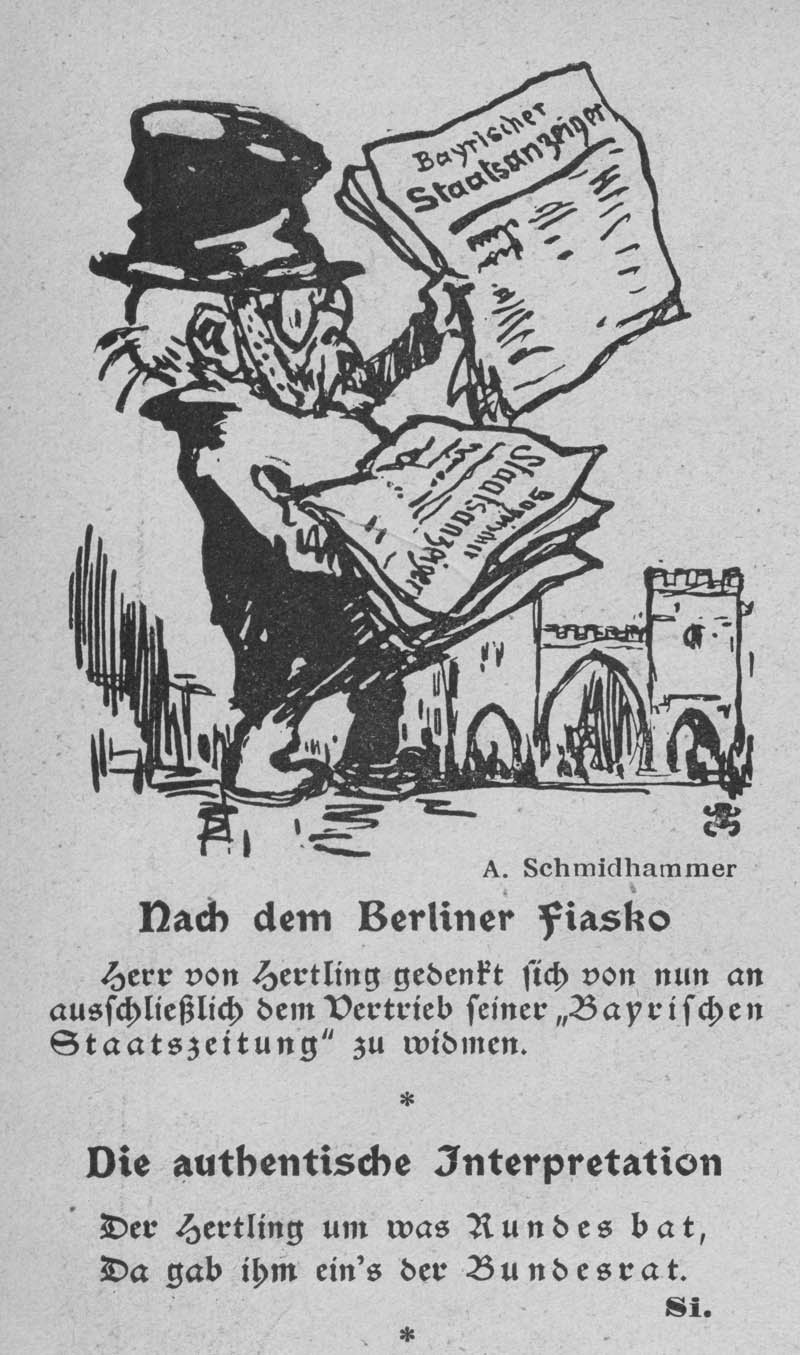 Karikatur von Arpad Schmidhauer "Nach dem Berliner Fiasko", aus: Jugend Nr. 50 vom 8. Dezember 1912. (Bayerische Staatsbibliothek, Porträt- und Ansichtensammlung)
