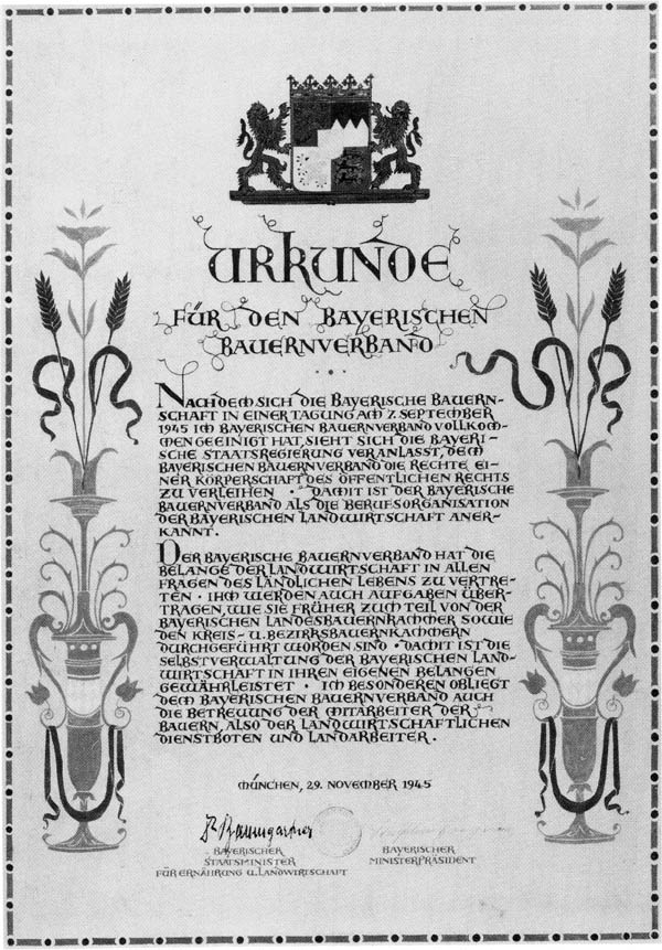 Mit der Ermächtigung der Militärregierung wurde Ende 1945 dem Bayerischen Bauernverband von der Bayerischen Staatsregierung der Status einer Körperschaft des öffentlichen Rechts verliehen. (© Bayerischer Bauernverband)