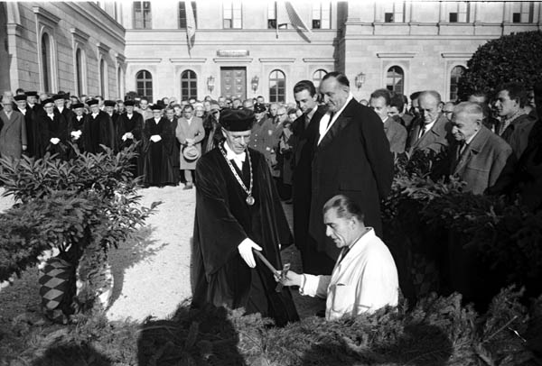 Grundsteinlegung für den Kronprinz-Rupprecht-Brunnen, 20. November 1959. (Bayerische StaatsbibliothekMünchen/Timpe)