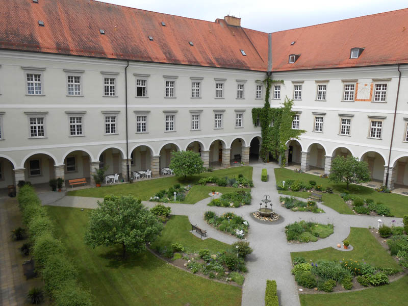 Nikolakloster Passau, Sitz der Schwesternprovinz. In die Gebäude zogen nach Kriegsende 1945 aus Osteuropa vertriebene Schwestern des Deutschen Ordens. Hier befinden sich auch die Fachakademie für Sozialpädagogik, ein Kindergarten und ein Altenheim. Teile der Gebäude werden zudem von der Universität Passau genutzt. (Foto: Provinz der Schwestern des Deutschen Ordens, Passau)