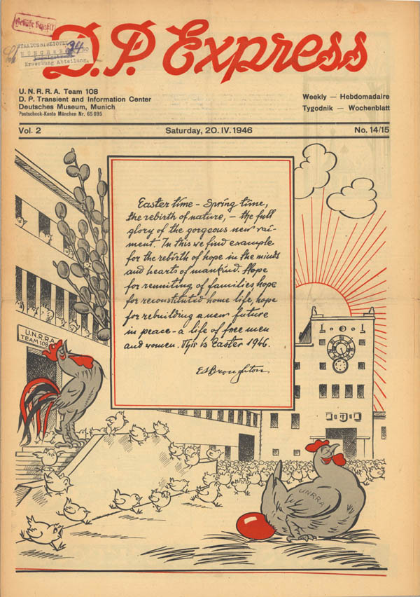 Oster-Ausgabe des D.P.-Express, Samstag, 20. April 1946. (Bayerische Staatsbibliothek, Film R 95.688-13)