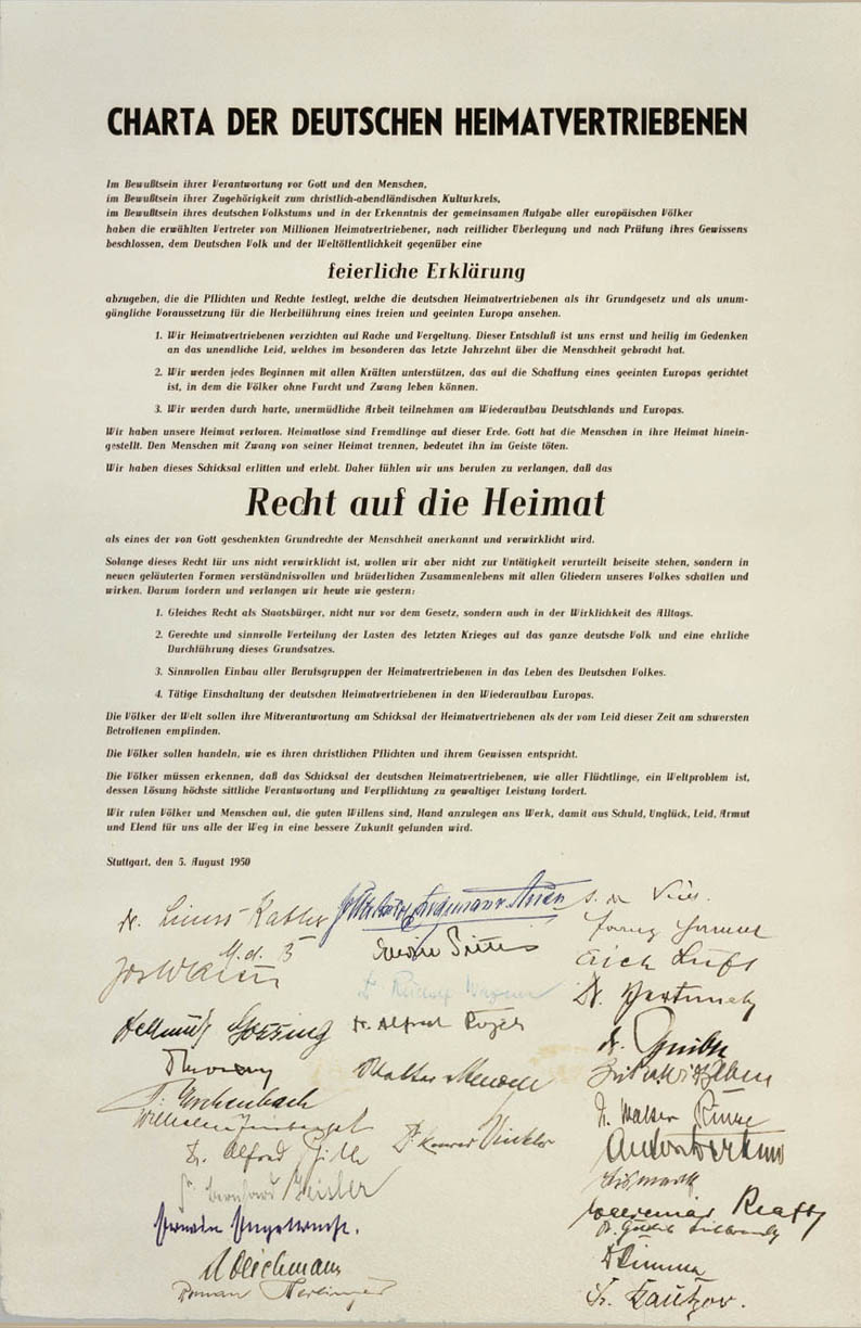 Charta der deutschen Heimatvertriebenen vom 5. August 1950. (BdV - Bund der Vertriebenen)
