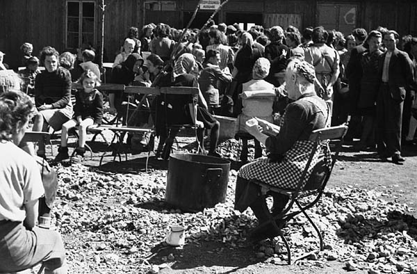 Flüchtlinge im Lager Dachau vor der Verpflegungsausgabe, 1946. (Foto: Haus der Bayerischen Geschichte, Augsburg)