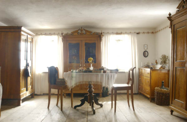 Eine sog. "schöne Kammer" (auch "Obere Stube") mit bürgerlichem Anspruch im Freilichtmuseum Finsterau (Lkr. Freyung-Grafenau), 2004. (Foto: Landesamt für Denkmalpflege)