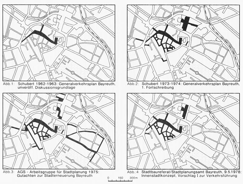 Bayreuth: Planervorschläge für den Fußgängerbereich 1962-1978. (Grafik: Monheim)