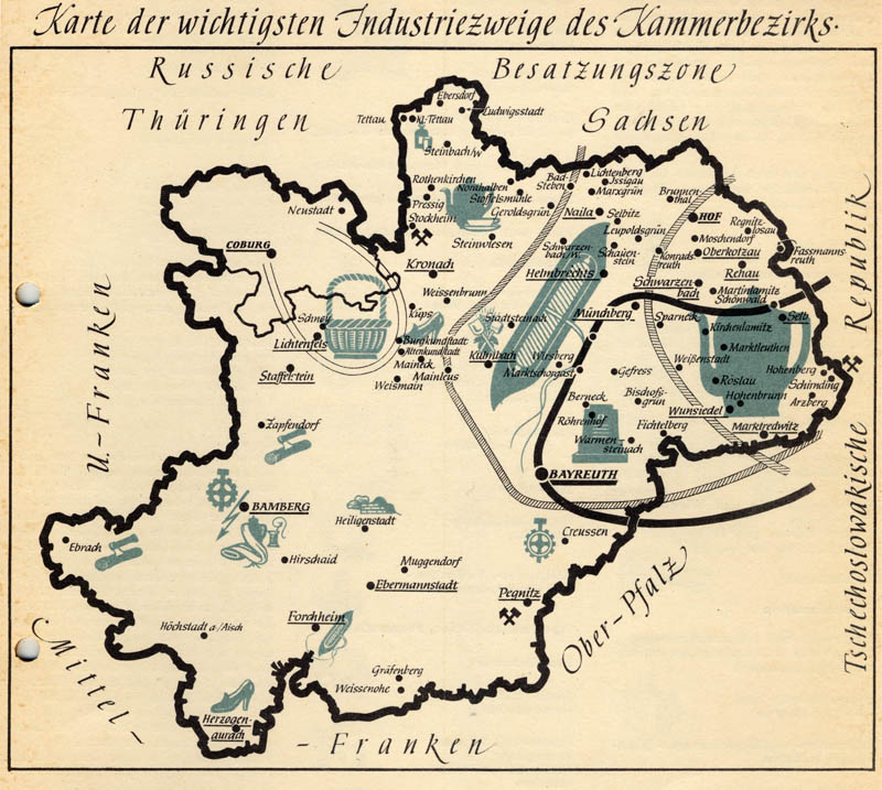 DDie Karte zeigt das Gebiet der IHK Bayreuth im Jahr 1950. (Bayer. Wirtschaftsarchiv, K 8/1982)