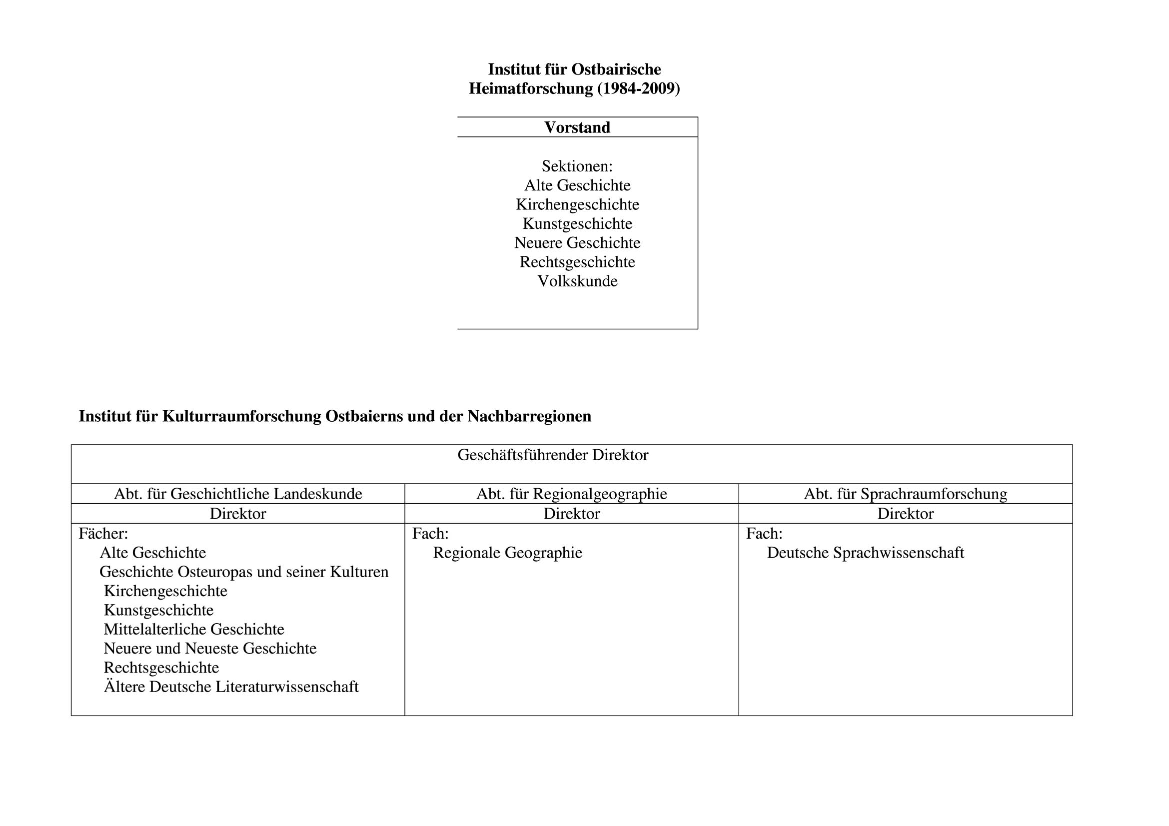 Organigramm des Instituts für ostbairische Heimatforschung (bis 2009) und des IKON (ab 2010). (Bild: Institut für Kulturraumforschung Ostbaierns und der Nachbarregionen)
