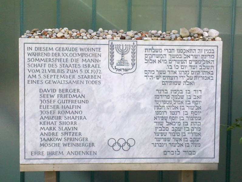 Gedenkstein für die israelischen Opfer des Attentats während der 20. Olympischen Sommerspiele in München 1972 im Olympiadorf am Gebäude Conollystraße 31. (Foto: Privatbesitz)