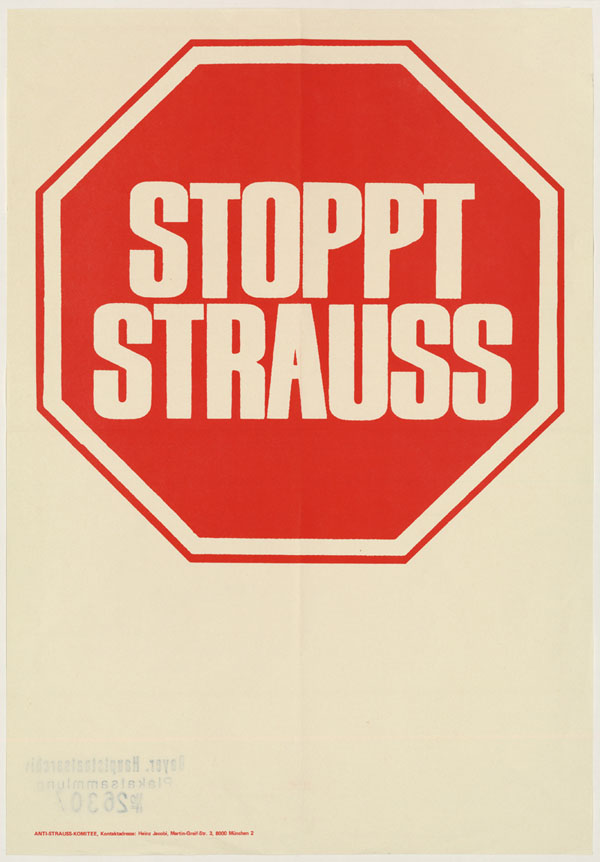 Logo der Kampagne "Stoppt Strauß", die im Rahmen der Bundestagswahl und der Kanzlerkandidatur Franz Josef Strauß' 1980 Stimmung gegen den Kandidaten machte. (Bayerisches Hauptstaatsarchiv, PS 26307)