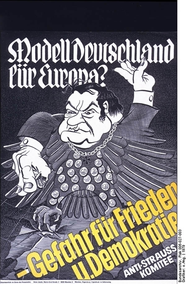 Karikatur von Franz Josef Strauß als Bundesadler. Plakat des Anti-Strauß-Komitees, 1979. (Foto: Bundesarchiv, Plak 006-027-003; Grafiker: o. A./1979)
