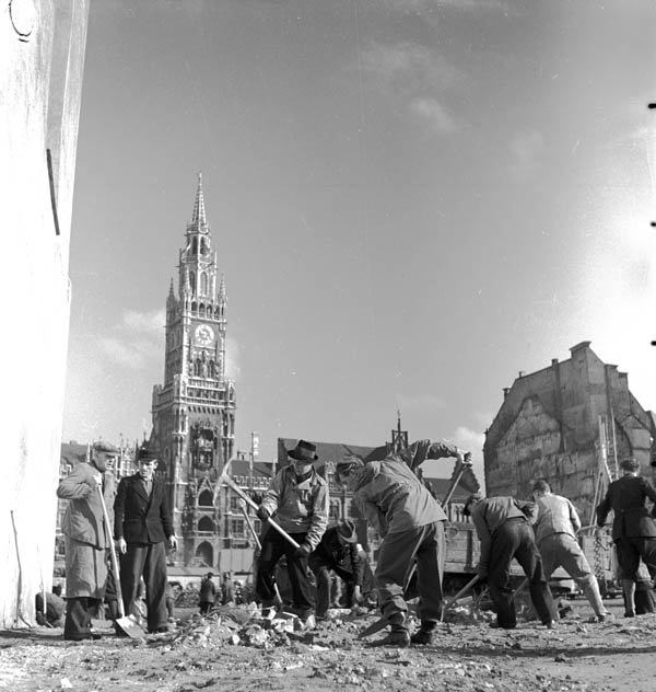 Alltag im zerstörten Nachkriegs-München: Aktion "Rama dama" im Rosental zwischen Rindermarkt und Marienplatz, 29.10.1949. (Bayerische Staatsbibliothek, Fotoarchiv Fruhstorfer)