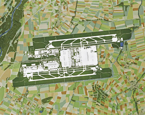 Modell des Verkehrsflughafens München (Draufsicht), 2002. (Foto: Deutsches Museum)