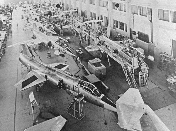 Endmontage des Überschalljägers Lockheed F-104-G "Starfighter" in einer Werfthalle der Messerschmitt AG in Manching (Lkr. Pfaffenhofen a. d. Ilm). (Foto: Deutsches Museum)