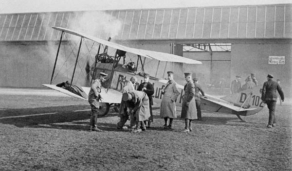 Rumpler C-I D-102 Verkehrsdoppeldecker auf dem Flugplatz Nürnberg-Fürth, ca. 1921-1923. (Foto: Deutsches Museum)