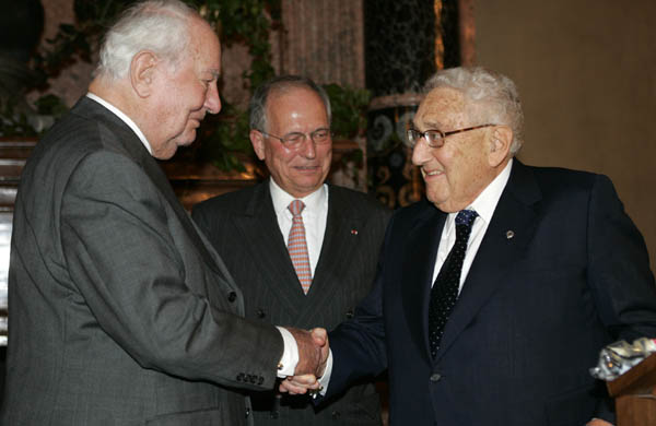 Ewald von Kleist-Schmenzin (1922-2013), Dr. Henry A. Kissinger (geb 1923) und Botschafter Wolfgang Ischinger (geb. 1946), Münchner Sicherheitskonferenz 2009. (von links nach rechts; Foto: Kai Mörk)