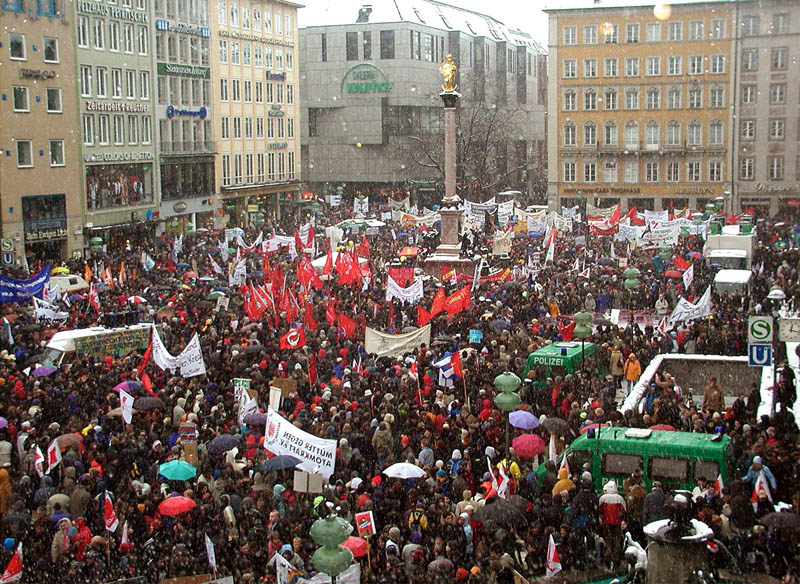 Globalisierungsgegner demonstrieren am Rande der Nato-Sicherheitskonferenz am Münchener Marienplatz, 8. Februar 2003. (Foto: imago stock & people GmbH)