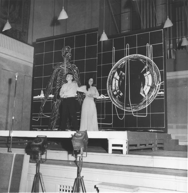 Probe zu "Les malheurs d'Orphée" von Darius Milhaud (1892-1974) unter der Leitung von Ernest Bour (1913-2001) und dem Symphonieorchester des Bayerischen Rundfunks am 20. November 1953. (Bayerische Staatsbibliothek, Bildarchiv timp-012643)