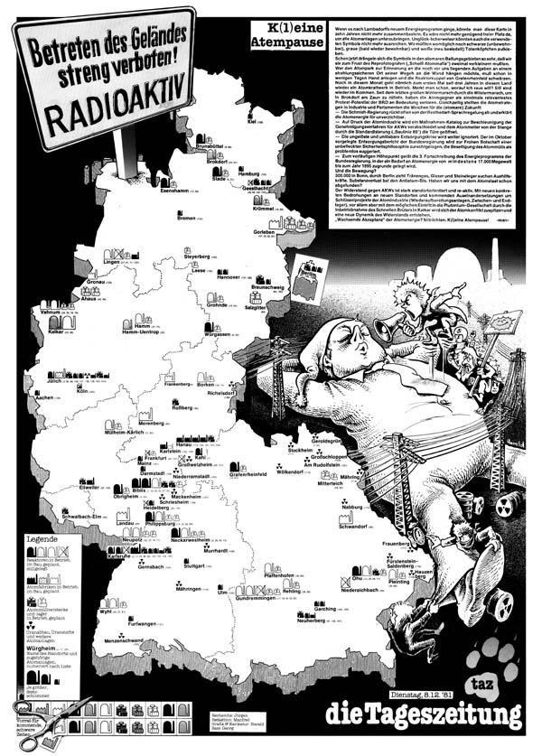 Atomanlagen in der Bundesrepublik (Stand: 1981). (Illustration: Harald Juch)