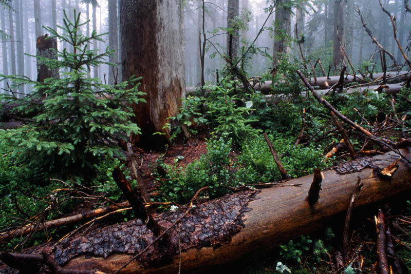 Waldabteilung Hochwinkel: Im Winter 1991 fegten die Stürme Vivian und Wiebke mit Windgeschwindigkeiten von 150 Stundenkilometern über die Bergkämme des Bayerischen Waldes und entwurzelten zahlreiche Fichten. Nachfolgende trocken-heiße Sommer und eine Häufung von Samenjahren bewirkten eine zusätzliche Schwächung mit der Folge, dass es ab Juli 1995 in den natürlichen Fichtenwäldern des Nationalparks zu einem massiven Borkenkäferbefall kam. Doch bereits wenige Jahre später entwickelte sich unter dem Kronendach der abgestorbenen Altbäume aus Samen und bereits vorhandenem Jungwuchs wieder eine junge Waldgeneration. (Nationalparkverwaltung Bayerischer Wald, 1998)