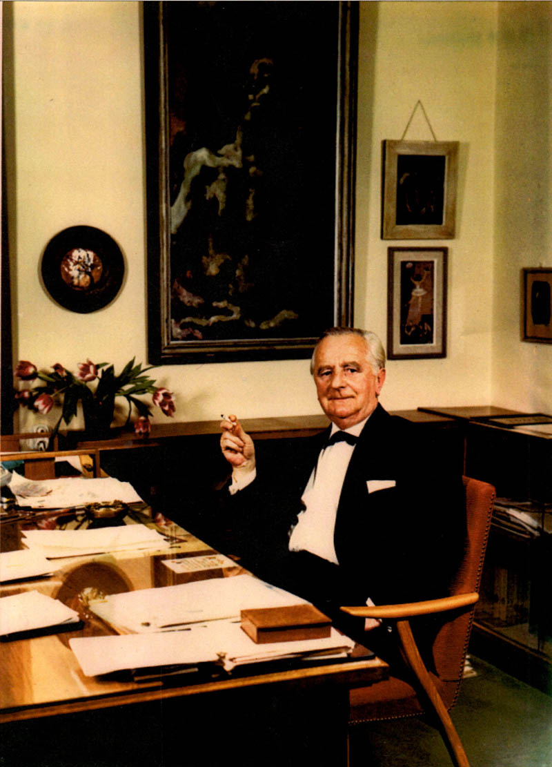 Der Gründer der Nürnberger Nachrichten, Dr. Joseph E. Drexel (1896-1976), an seinem Schreibtisch. (Foto: Nürnberger Nachrichten)