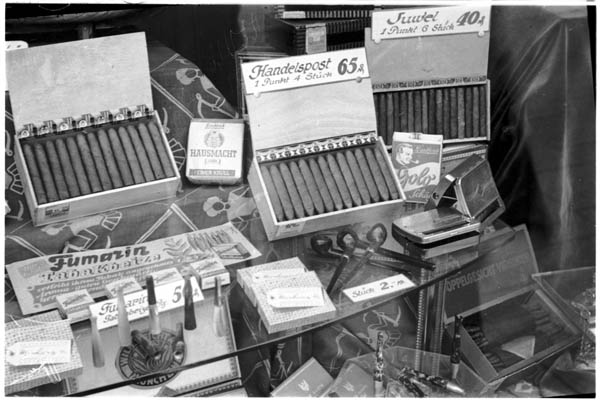 Auch Genussmittel sind nach der Währungsreform 1948 wieder überall in den Geschäften verfügbar. (Bayerische Staatsbibliothek, Bildarchiv fruh-00134)
