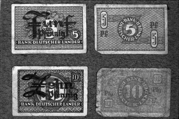 Die neue Währung: Banknoten der "Bank Deutscher Länder", Juni 1948. (Bayerische Staatsbibliothek, Bildarchiv walz-0510)
