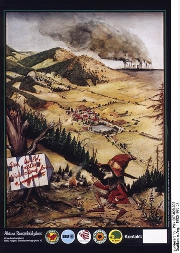 Den Wald retten. Widerstand leisten". Plakat der Aktion Rumpelstilzchen. (Bundesarchiv: Plak 007-020-005, Grafiker: o. Ang.)