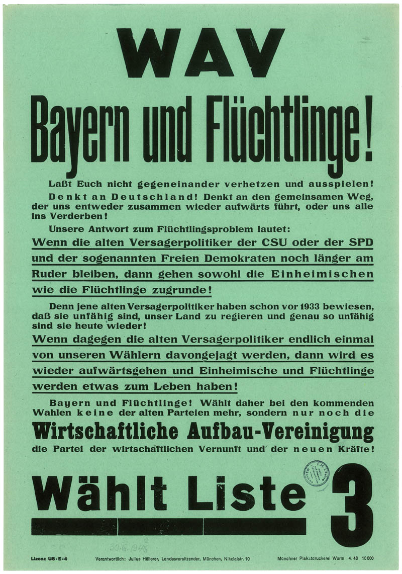 Wahlaufruf der WAV anläßlich der Verfassungsgebenden Landesversammlung am 30. Juni 1946. (HStA PS 26373)