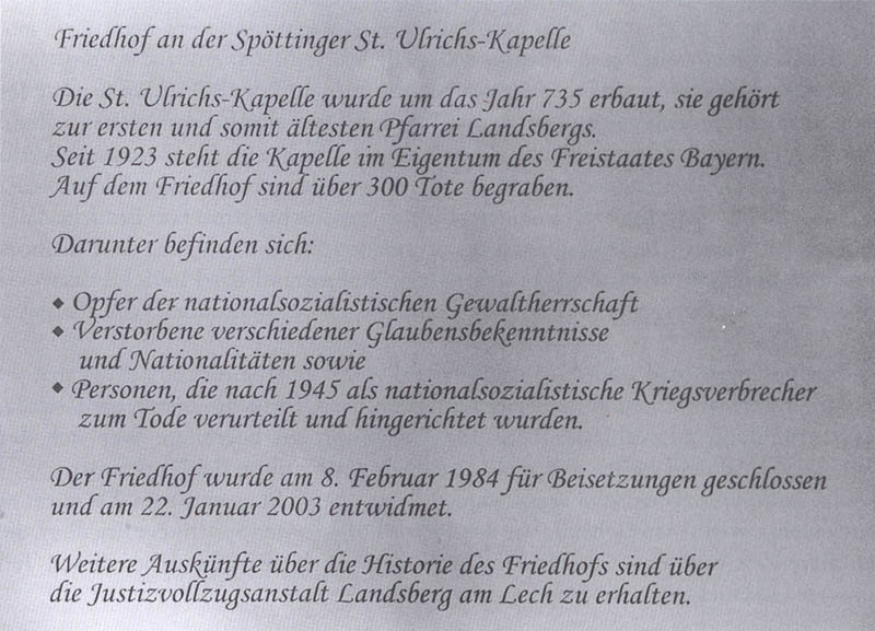 Informationstafel auf dem alten Friedhof im Landsberger Stadtteil Spötting. (Privatarchiv Heinrich Pflanz)