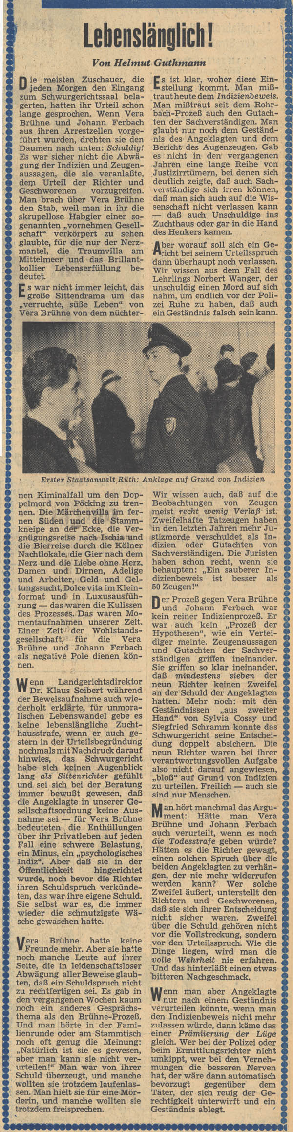 Bericht über die Verurteilung von Vera Brühne (1910-2001) und Johann Ferbach (1913-1970) wegen des Mordes an Dr. Otto Praun und seiner Geliebten Elfriede Kloo. (Abendzeitung vom 5. Juni 1962, 15 Jg., Nr. 134, 3)