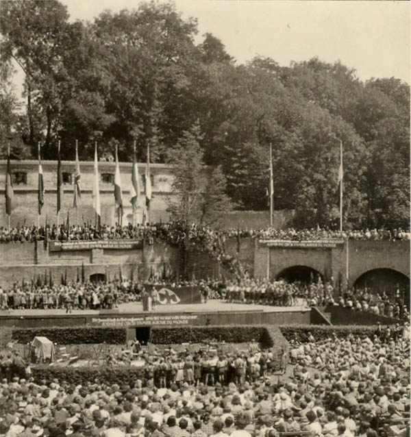 1Aufnahme vom internationalen Jugendtreffen "Falkenstaat Junges Europa": Das erste Camp des "International Falcon Movement" (IFM) in Deutschland fand vom 6. Juli bis 31. August 1952 in Schwangau (Lkr. Ostallgäu) statt. In drei Runden kamen etwa 10.000 Teilnehmer zu dem Treffen. (Foto: Roger Kern, Lorient)