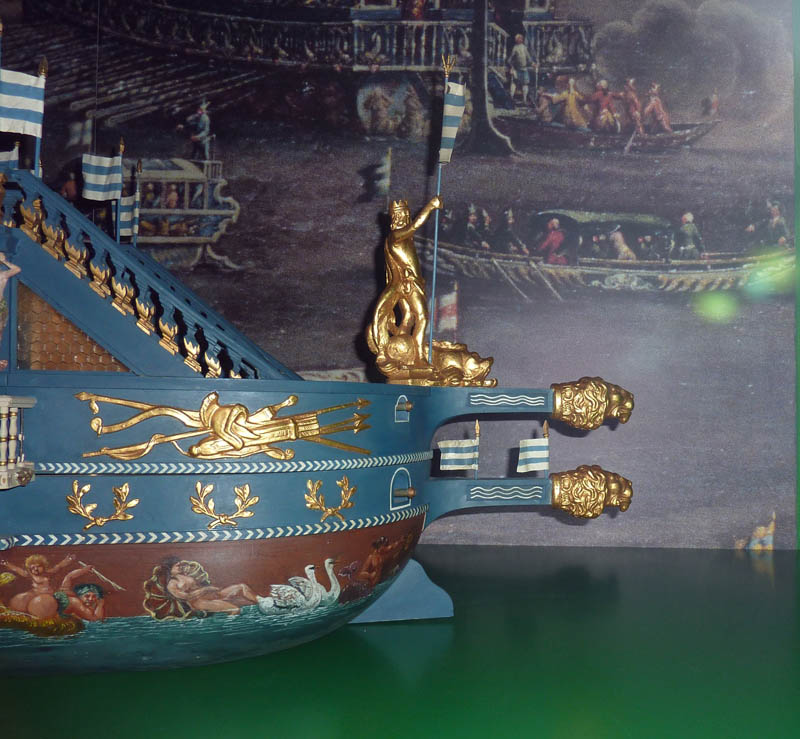 Bucentaur: Detail des Buges am Modell im Museum Starnberger See in Starnberg. (Foto von Xocolatl via Wikimedia Commons)