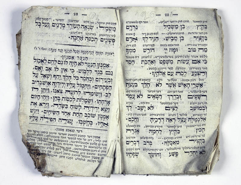Fragment einer hebräischen Schulfibel, Fürth 1852. (Foto: Bayerisches Nationalmuseum, Inv.-Nr. L 2007/33, unbefristete Leihgabe der Stiftung Ehemalige Synagoge Ichenhausen)