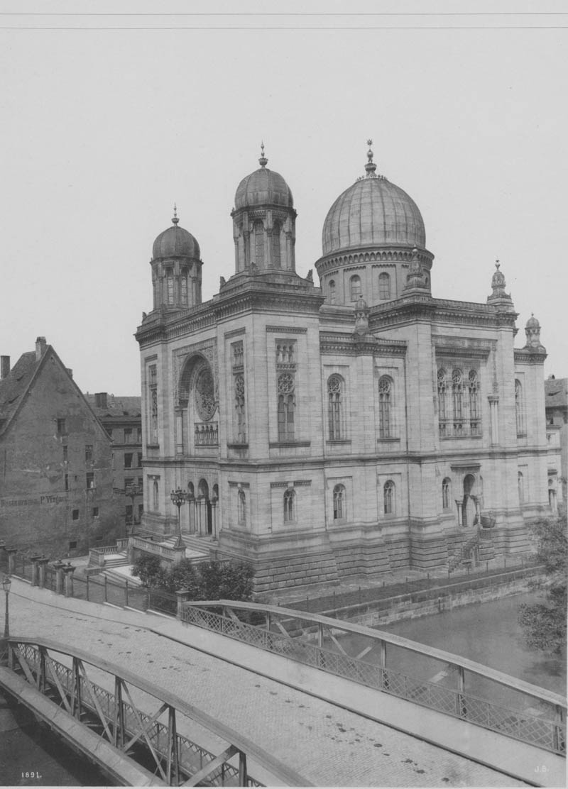 Nürnberg: Nach München war die jüdische Gemeinde in Nürnberg diejenige mit den meisten jüdischen Schülern. Das Bild zeigt die 1874 erbaute Synagoge am Nürnberger Hans-Sachs-Platz. (Bayerische Staatsbibliothek, Bildarchiv, port-025046)