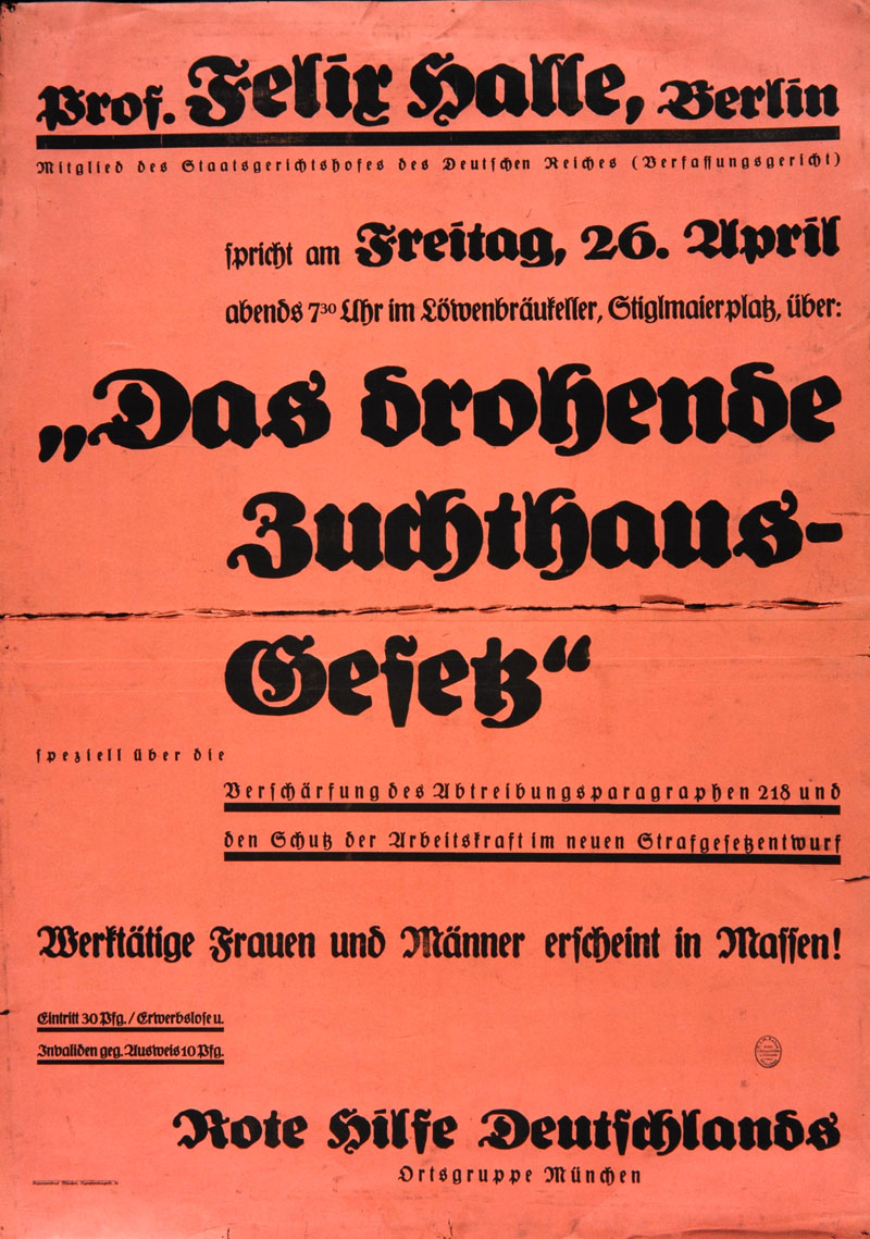 Veranstaltungshinweis der Roten Hilfe Deutschland über ein Kundgebung im Löwenbräukeller, April 1929. (Bayerisches Hauptstaatsarchiv, Plakatsammlung 15683)