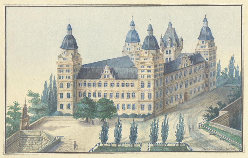 Schloss Johannisburg in Aschaffenburg. Zeichnung von Franz Zeller 1856. (Stadt- und Stiftsarchiv Aschaffenburg, GS-II 21)