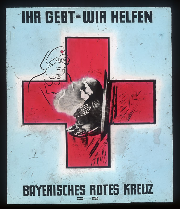 Ihr Gebt – wir helfen. Kino-Reklame des Bayerischen Roten Kreuzes um 1950. (Bayerische Staatsbibliothek, Bildarchiv hoff-62198) HLB