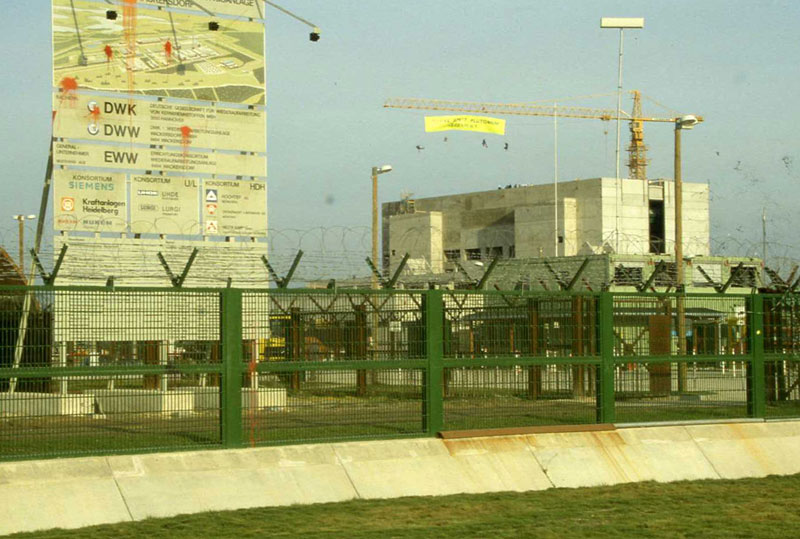 Greenpeace-Aktivisten besetzen am 27. Oktober 1988 einen Baukran im WAA-Gelände. (Fotografie: Wolfgang Nowak) HLB