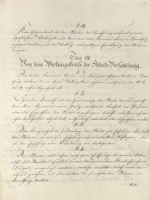 Titel VII der bayerischen Verfassung von 1818. (Bayerisches Hauptstaatsarchiv, Landtag 10295, lizenziert durch CC BY-SA 4.0) (Bavarikon) HLB