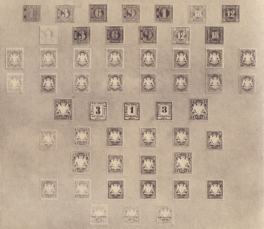 Bayerische Briefmarken von 1849-1910. Abb. aus: Das Bayerland, Jahrgang 36 vom April 1925, 258. (Bayerische Staatsbibliothek, 4 Bavar. 198 t-36) HLB